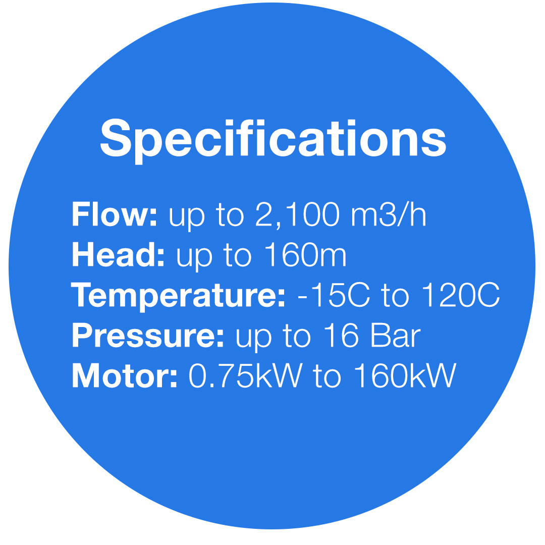 - Back-Pullout Casing: Efficient volute design allows easy servicing without removing pipework.