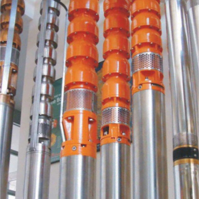 Submersible turbines are driven by a submersible motor coupled directly to the bowl shaft. The discharge piping requires only a simple discharge elbow at the discharge surface. There is no packing box or mechanical seal to maintain. Power to the motor is conducted via a waterproof cable.